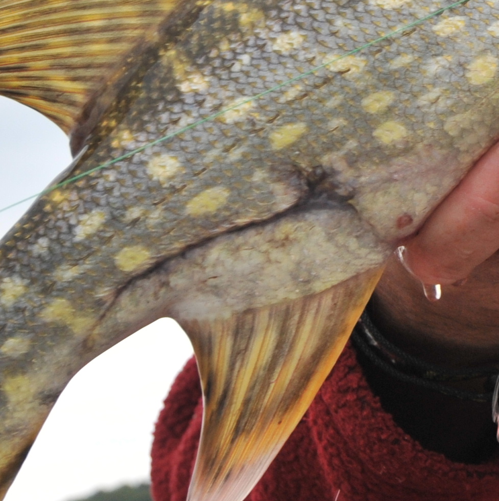viele verletzte kleine Karpfen fing ich dieses Frühjahr, die vom Schnabel des Kormorans geritzt waren.