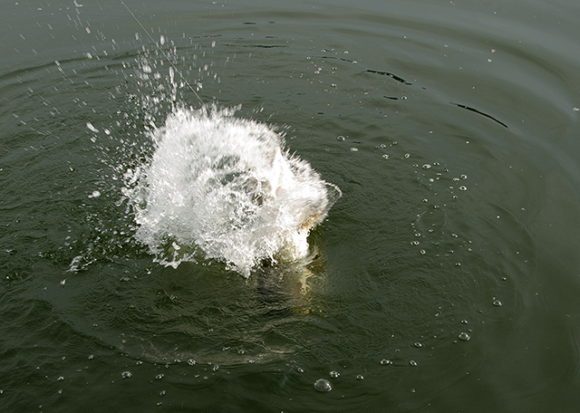 Wir drehten das Boot und fuhren noch einmal über die Stelle und wieder kam der Biss und wieder stieg der Fisch aus.