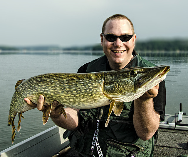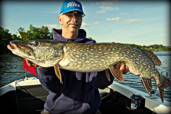 Also ging es nach ca. 2Std. Barsche pimpeln zum Pike angeln. Beim werfen konnte ich einen kleinen ca. 65cm Pike ins Boot holen.