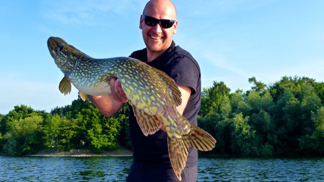 Ich habe jetzt Besuch aus England. Mein Gast Carl konnte heute die "bescheuertste Hecht-Methode überhaupt" kennenlernen und gleich zwei Hechte damit fangen. Früh und spät haben sie ganz gut gebissen und wir haben 5 Hechte gefangen sowie recht viele "versiebt". Mitte 80 war aber Schluss - Dickfische hatten wir auf dem Lot, wollten aber nicht... ;)