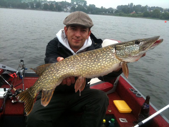 Hechte gab's auch. Einer nach einer kurzen Schlepprunde als ich den Köder zum Boot getwitcht habe, einen auf Drop Shot (tote Rute).