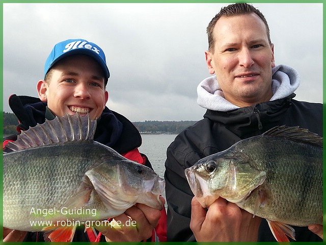 Beide Jungs waren mehr als zufrieden, erster Hecht gefangen, Barsch PB´s gebrochen und ne fette Menge Spaß an Bord! Wir haben mindestens genauso viel gelacht wie gefangen wurde :D