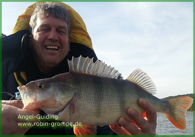 Allerdings waren die Barsche Sau gut drauf. Nach der doch recht warmen letzten Woche bissen die Fische wieder richtig gut. Trotz des Sturmes am gestrigen Tag konnten wir wieder gut abräumen!