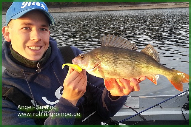 Gefangen haben wir die lieben Barsche wie gehabt im Freiwasser, Top Köder der weiße Nitro Shad!