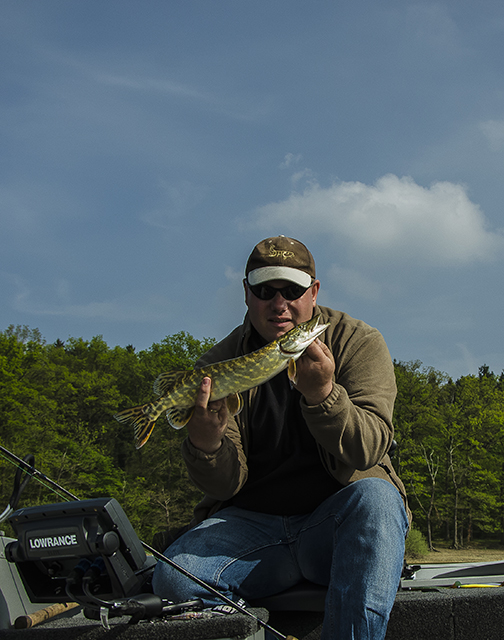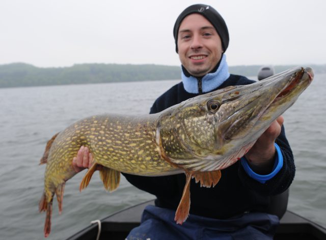 Um 15 Uhr ging es dann weiter. In einem flachen Bereich konnte ich meinen ersten Hecht des Tages zum Landgang überreden.