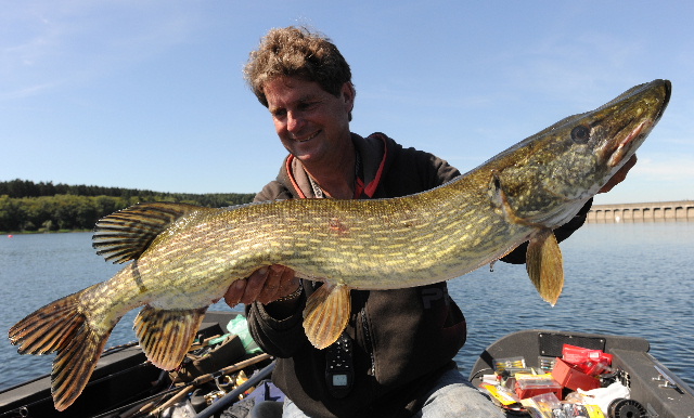 Gestern war ein regelrechtes "Hechtinferno" auf dem See, wie ich es selbst in dieser Meter-Dichte noch nicht erlebt habe. Eigentlich wollte ich gar nicht raus auf´s Wasser, sondern hatte viel zu tun. Lediglich, weil ich einen Kunden zum Tausch eines Bootes aufsuchen wollte, entdeckte ich eine große Dichte großer Fische. Klar, dass ich dann auch mal schnell den Köder ablasse. BUUMM - nach 1,5 Minuten hing ein Meterhecht an der Leine. Schnell hatten das andere Boote mitbekommen und bis zum Abend haben sich im "fängigen Bereich" ca. 10-12 Boote versammelt. Unterm STrich gab´s ca. 20 Meterfische bis 1,27 m, RIESENAALE (kein Scherz!) und auch einige, wenige Maränen. Das war absolut crazy. Meinen Hecht habe ich fotografiert und liefere ich nach. Was von den anderen Booten kommt, bleibt abzuwarten. Mitbekommen habe ich explizit folgende Größen: 1,27 m, 1,25 m, 1,18 m, 1,16 m, 1,14 m, 1,11 m, 1,10 m, 1,09 m, 1,08 m und viele "kleinere Meterfische". Wahnsinn, sag´ ich nur...
