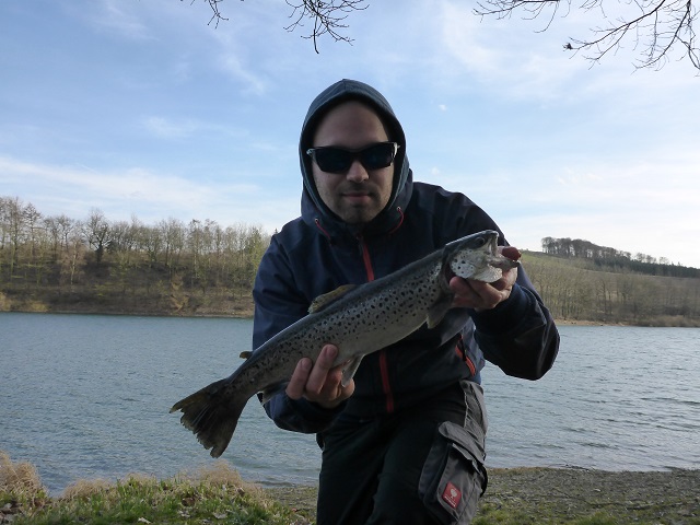 ich konnte heute meine erste maßige seeforelle vom ufer aus fangen :-)