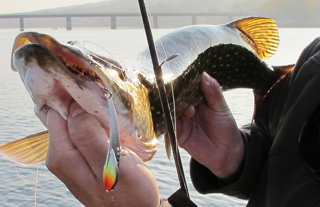 Ein Hecht (ca. 80 cm) aus über 20 Meter Tiefe konnte sich kurz vor der Landung befreien, wollte wohl nicht auf's Foto.