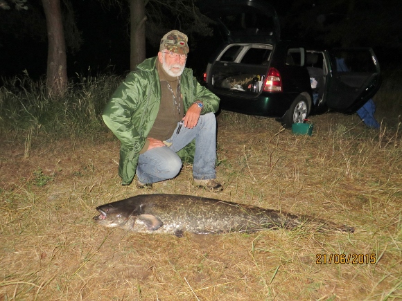 nach 4,5 Std. hatten wir ihn dann vor uns. Einen Wels von genau 1,50m...Wir waren erschöpft, aber glücklich.....Nach dem Fotografieren liessen wir ihn wieder schwimmen....