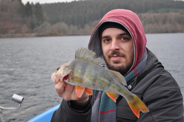 Die ersten 3 Stunden verbringen wir mit Suchen und ausprobieren, mein Cousin mit Drop Shot und Ich vertikal....es tut sich nichts. Als wir gerade die Stelle wechseln wollen, reisst mein Cousin die Rute hoch...Endlich! der erste Barsch und mit ca.30 cm gar kein schlechter. Keine Minute später rappelts auch bei mir und ein Fisch der gleichen Größe kommt zur Oberfläche. So schnell wie sie kamen, waren sie dann auch wieder weg. 5 Fische, das wars dann für diesen Tag.