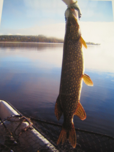 Die fahrt dauerte knapp 85 min und ob ihr es glaubt oder nicht der erste Biss kam genau 11 min nach unserer Ankunft. Kein Riese aber immerhin 68 cm und zwar auf den topp Köder von Hechtangler 2911. In der Nächsten Stunde fingen wir noch einen schönen 85cm Hecht mit einer Traumhaften Zeichnung und hatten den ein oder anderen Fehlbiss bis dann unser Motor anfing zu streiken. Als wir ihn dann nach einer guten halben Stunde wieder ans laufen bekommen haben hielten wir es für besser diesen schönen Seeteil zu verlassen und uns auf den weg zu unsrem haus zu machen da 18 km zu weit sind zu paddeln. Als wir dann so 3 bis 4 km vor unserem Haus waren bekamen wir die Info Junges der wind ist wieder da und nimmt auch wieder zu. Was soll ich sagen wir waren dann beide froh als wir nach einem heißem anlegen wieder festen Boden unter den Füßen hatten. Die nächsten beiden Tagen verbrachten wir dann alle mit einer Besichtung der nächsten Stadt und Kartenspielen da der wind es einfach nicht zuließ mit den Booten auszulaufen. Als wir dann am Fünften Morgen aufstanden war es
