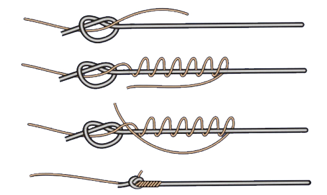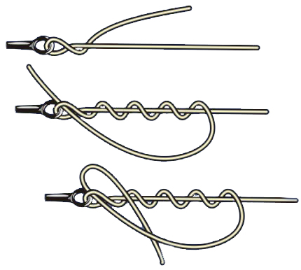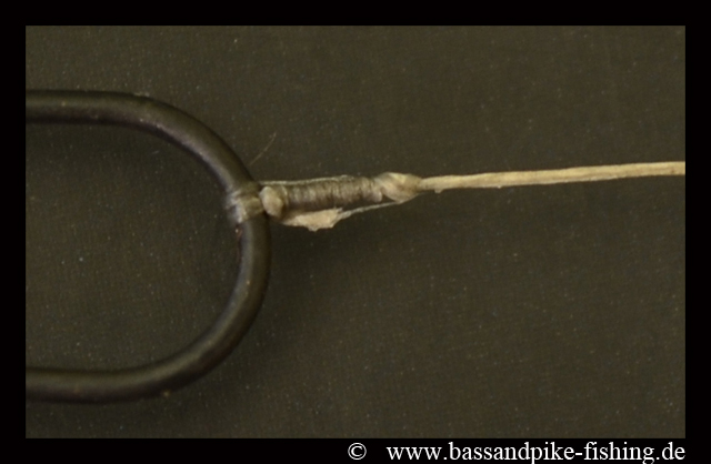 Wichtig!!!- mit der Monofilen zwei mal durch die Schlaufe gehen, sonst zieht er sich auf