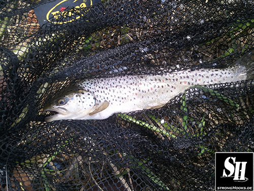 Zuerst hatte mein Kollege eine kleine Forelle, ca 32cm und kurz darauf ich eine 40er Bachforelle!!