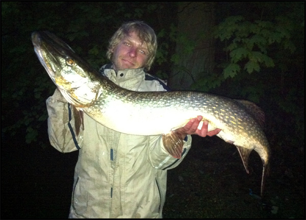 Gestern Abend wurd ein 1,19m Hecht von Alex G. aus Soest auf einen 2er Spinner gefangen, vom Ufer...