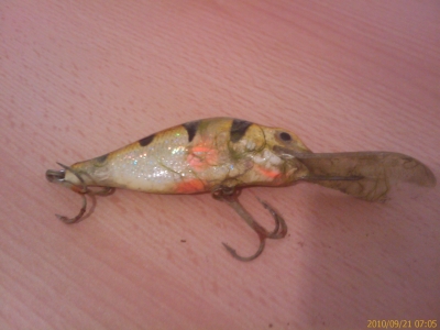 1x "Hammerbiss" im Freiwasser auf Castaic... Früh am Morgen ruderte ich so durchs Freiwasser, fern jeglicher Hindernisse... als auf einmal sich eine Bremse deutlich bemerkbar machte. Ich dachte nur "super... geiler Biß!", doch leider war der Widerstand ruhig... d.h. keine Schläge oder ähnliches. Im Endeffekt hatte ich einen kleinen Barsch (-wobbler) gehakt, der noch an einer anderen Schnur hing. Der Wobbler habe ich mitgenommen, was sonst noch an der Schnur hing, weiß ich nicht, da beim Hochholen die Schnur am Barschwobbler gerissen ist.