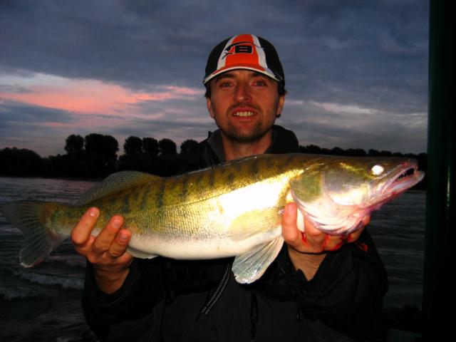 Gestern abend habe ich mich nochmal zu einer feierabendlichen Rhein-Session mit einem Teil der Ussat-Connection sowie Doris Mann Andreas getroffen. Das Wetter wechselte pünktlich von Dauerregen zu Sonne - einfach perfekt! Wir bekamen relativ zügig die ersten Bisse, doch irgendwie wollten die Biester nicht richtig inhalieren und so blieb es die erste Zeit nur bei Kontakten. An der zweiten Buhne bekam ich dann einen ziemlich knackigen Biss und die Rute war endlich krumm. Die hochfrequenten Kopfstöße ließen jedoch keinen Zander vermuten. Ein schöner Barschmoppel hatte sich den Slotti voll weggeballert, so dass keine Gefahr eines Aussteigens bestand.