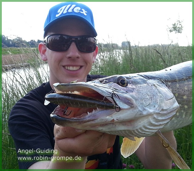 Christian hat morgens nach 15 Minuten seinen ersten Hecht überhaupt gefangen. Köder: Illex Magsquad im Pike design ;)
