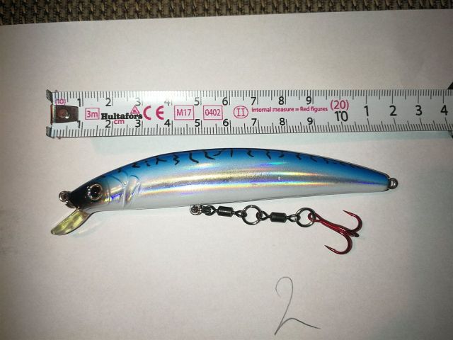 Weil das Gewicht nun circa am Mittelpunkt des Wobblers ist, läßt sich die Laufgeschwindigkeit um ca. 50% verringern und die Lebendingkeit erhöhen. Bei MeFos, Lachs im Salzwasser funktioniert es sehr gut, und im Süßwasser auch. Bisher habe ich es aber nur mit Floating Wobbler probiert. Übrigens darf der Drilling gern 1 ~ 2 Nummern größer gewählt werden; bei Wobblern mit drei Hakenüsen entspr. größer.