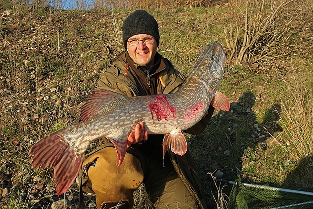 gestern fing ich einen dicken 1,10m Hecht der auf der Seite Blutete und durch mein no Knot im Drill verletzt wurde.