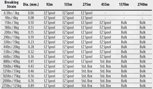 Ich bin mit ziemlich sicher, dass die 10lbs Variante der in Deutschalnd angebotenen 0,15er entspricht und die 15lbs der 0,19er.