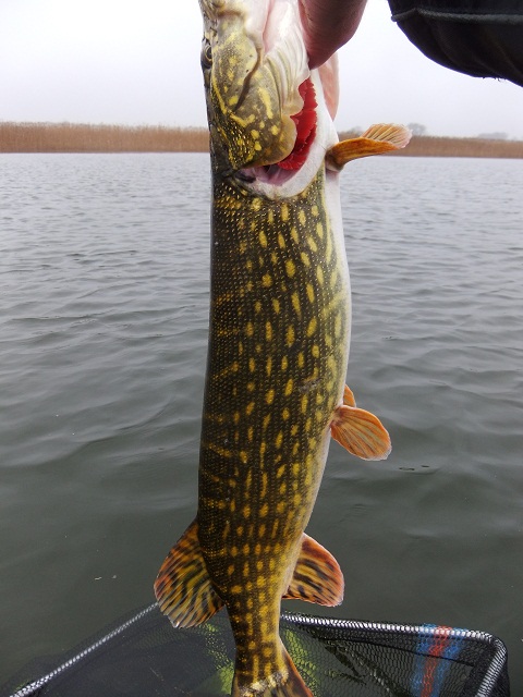 Nach kurzem Drill kam ein wohlgenährter 80er Hecht an die Oberfläche.