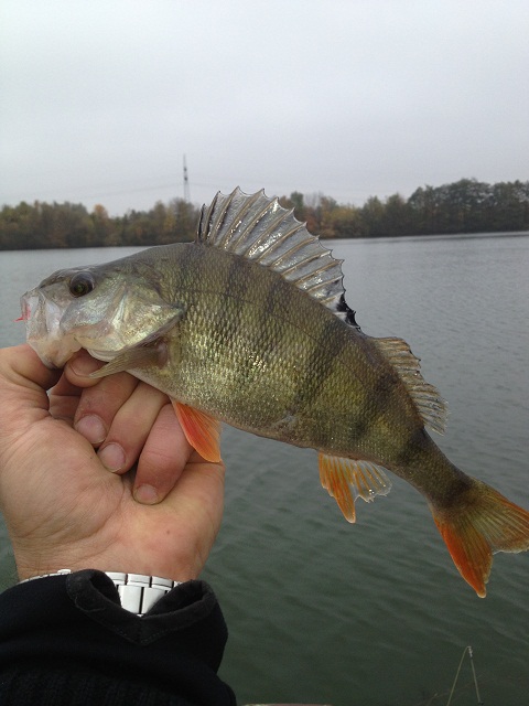 Die ersten Plätze verlaufen den Erwartungen entsprechend - mies. Kein Zupfer, kein Anzeichen von Fisch, aber gutes Wetter ! Das hält mich dann doch bis Mittag bei Laune und so komme ich in einer kleinen Bucht mit recht seichtem Wasser an, die Unterwasserpflanzen-Welt ist schon deutlich auf dem Rückzug und im Zusammenspiel mit dem Hochwasser ergibt sich hier eine tolle Möglichkeit zum Watangeln, im Sommer ist hier nichts zu holen, vllt ja heute ?! Doch auch hier, wie an den Stellen zuvor - nichts ! Mit einem kleinen Unterschied - ich stehe mitten in einem Brutfisch Schwarm ! Anscheinend kleine Güstern und Rotaugen - hmm was hab ich dabei ?? Ich bleibe bei einem kleinen, unscheinbaren Wobbler im Weißfisch Design hängen ( keine Ahnung welcher Marke, er liegt schon ewig recht unbeachtet im Koffer und hat jede Umräum - Aktion irgendwie überlebt ), die Lauftiefe scheint zu stimmen, arbeitet recht unscheinbar -einen Versuch ist es Wert. Zweiter Wurf - Tock Tock - Anschlag - der hängt, und kein schlechter ! Nach kurzem aber knackigem Drill kann ich doch noch den ersehnten Zielfisch per Hand landen, ich schätze gut 70 cm, Klasse !