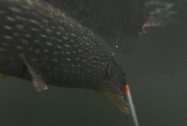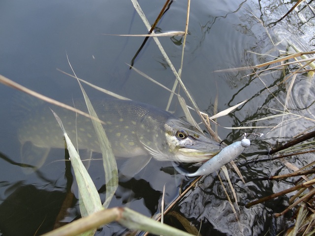 in dem glasklaren kalten Wasser zeigte sich ein herrlicher Hecht.