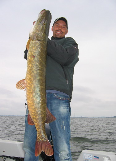 Gesagt getan , mehr oder weniger motiviert sind wir los und dieser eigentlich in meinen Augen mit der Spinnrute bewaffnete Sparziergang entpuppte sich als folgenschwere Überraschung, die in nächster Zeit ( Jahren ) noch schwierig zu Toppen ist und wo gleichzeitig keiner von uns mit gerechnet hat………Aber das ist eben die Spannung beim Angeln, dass was die meisten hier leben und lieben und das kann man einem Außenstehenden schlecht vermitteln .Zum Glück hatten wir diesmal an Alles gedacht und konnten diese schöne kugelrunde, schwangere Hechtdame ablichten.
