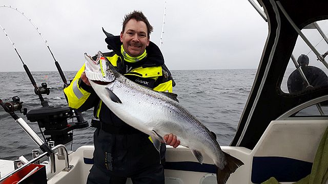 Zwischen Simrishamn (S) und Bornholm (DK) werden z.Z. recht ordentliche Lachse gefangen, Fische zwischen 5~9 KG sind an der Tageordnung, aber auch wie auf den Bildern Fische von 14~15 KG.