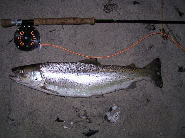 Siehe Bild 1, dort werden nicht nur regelmäßig gute MeFos gefangen, sondern auch so macher Lachs vom Ufer aus, die letzten 6 Wochen waren es 4 Stück von dän. Anglern, alle zwischen 80 - 95 cm. Insgesamt fingen wir 17 MeFos in 24 Std., wobei 2 mit nach hause durften, leider hatten wir den Ersatzakku vergessen, sonst hätten wir gern noch weitere Bilder gemacht.