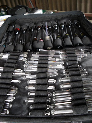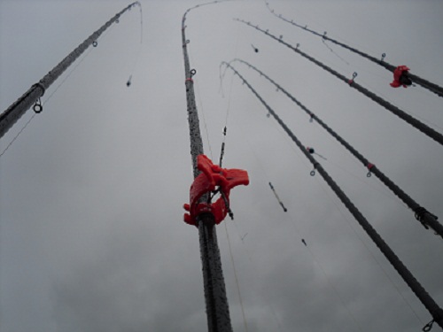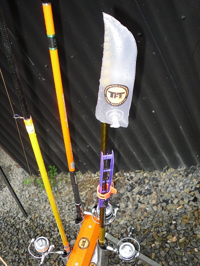 Lars baute in der Zeit seine anderen 12 Ruten auf die er schon vormontiert hatte und in seinen tollen Rutenständer stellte.