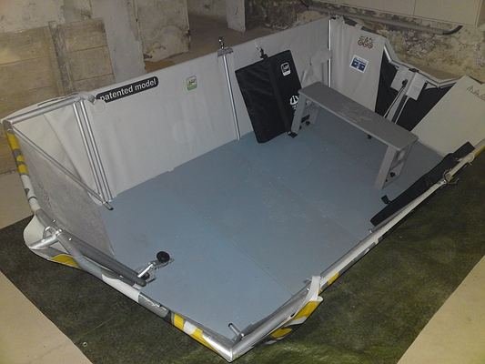 es besteht aus einer sehr dicken Plane mit Alugestänge und ausgeschäumten Holzboden.