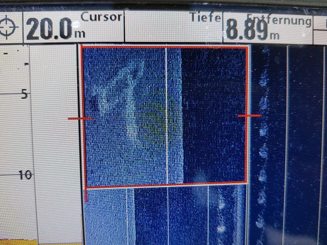 Keinerlei kaum noch Aussagemöglichkeit mehr über die Grundbeschaffenheit, generell ziemlich verrauscht durch's Schraubenwasser (besonders wenn man dann doch etwas schneller fährt). Also eigentlich für mich nicht brauchbar. Mag auf einem Ruderboot/E-Motor weniger schlimm sein...