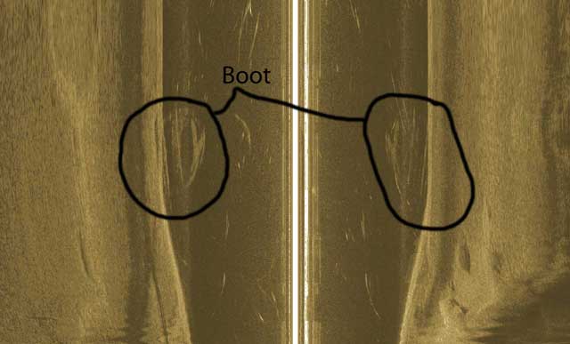 Ich habe eine Frage zu Deine Screenshots. Wie ist es zu erklären, dass das Boot zu beiden Seiten parallel liegend auftaucht? Könnte es sein, dass eines der Echos auch etwas anderes darstellt?