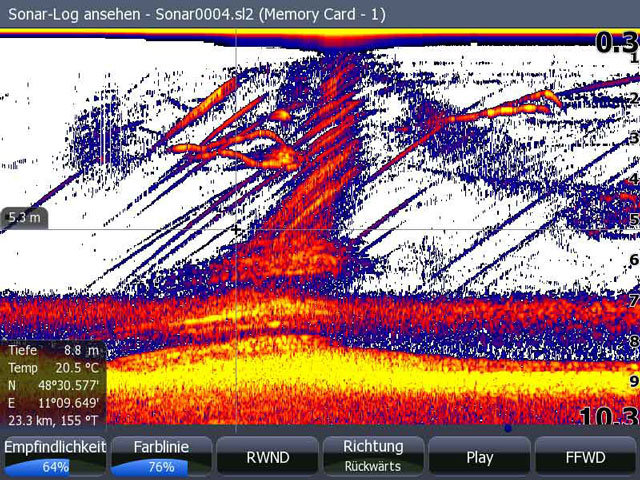 Als ich am nächsten Tag mit dem Sonarlogviewer von Lowrance die Files nochmal am PC