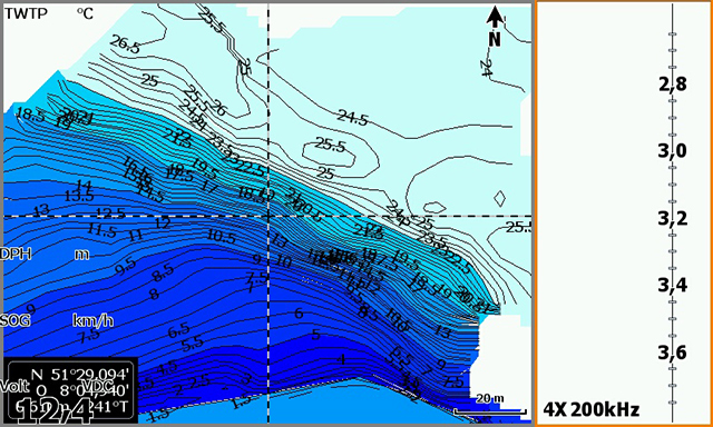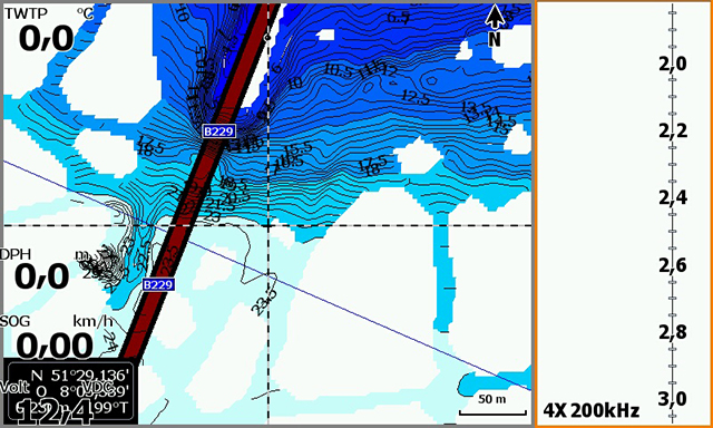 Heute habe ich die Uferlienie und den Bereich hinter der Bojenkette bearbeitet und die Karte aufs Echo gepackt.