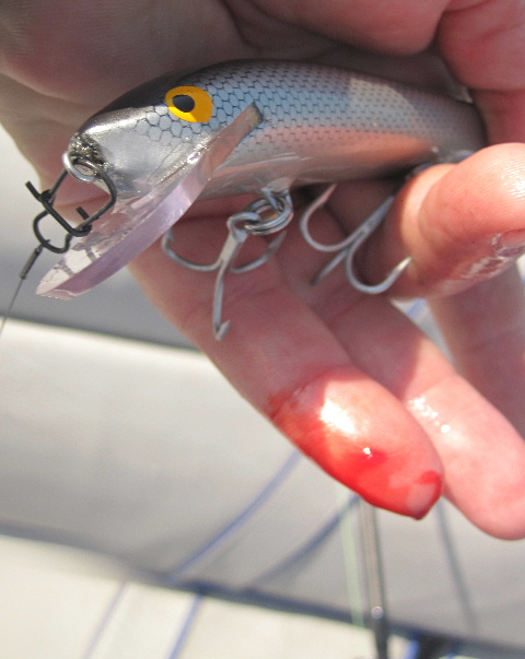 Gestern hat´s mich selbst mal wieder erwischt! Nachdem ich einen schönen Zander am Nils Master gelandet hatte, wollte ich den besonders schonend releasen. Cool den Drilling gepackt und der Zander sollte sich selbst losschütteln. Hat er auch gemacht, aber...