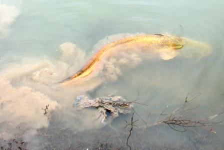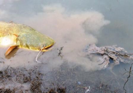 Lebendiger Waller macht Bekanntschaft mit verrottetem, abgehackten Waller-Totenkopf. Für den lebendigen Waller sicherlich eine Horrorshow... und eine hoffenlich auch eine Warnung! :o