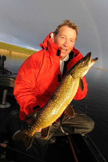 Heute gab´s hier mal schöne Angelstimmung mit wechselhaftem Wetter. Schon bei der Ausfahrt wurden wir mit Regenbogen begrüßt und dann biss auch noch ein Esox unterm Regenbogen. Auf Fb schrieb ein Mädel: "kitschig", aber ich finde dennoch schön... ;-)