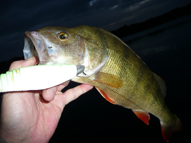 so wie der leuchtet, hat der Barsch bestimmt einen Flußkönig verschluckt.......