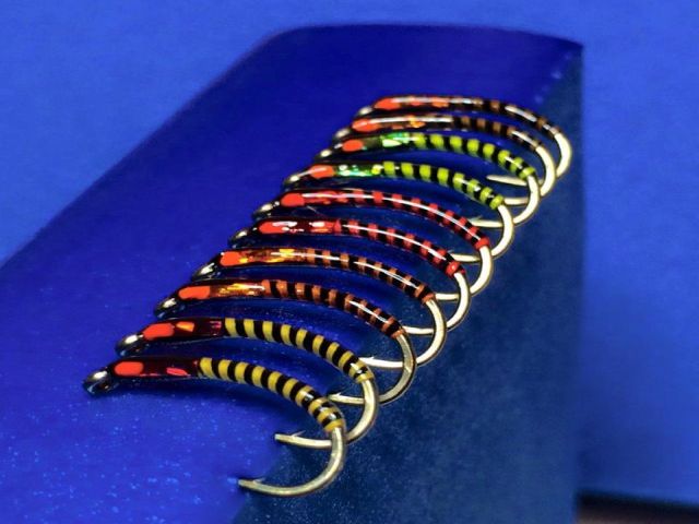 Die populärsten Fliegen dafür ist eine Art Nympfe, der sog. Buzzer Fliege - imitiert das Larvenstadium von Mücken oder Eintagsfliegen,