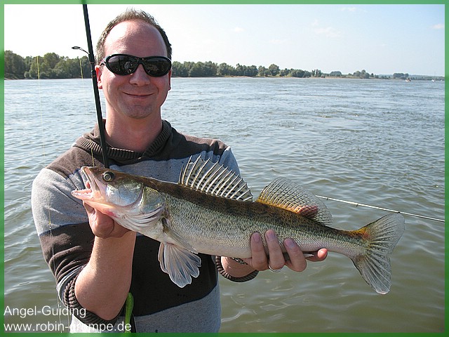 Am Wochenende waren wir 2 Tage zum Guiding am Rhein. Beide Tage empfand ich als recht zäh. Insgesamt gab es sehr wenige Bisse, was ich auf das erstaunlich klare Wasser bei niedrigem Wasserstand zurückführe. Dennoch gab´s ein paar schöne Fische. Über Hechte kann man sich im deutschen Rhein immer freuen und Zander über 60 cm sind ja auch nicht unbedingt die Regel. Dafür blieben einige Mitfahrer aber leider auch Schneider. Ich hatte am Samstag 2 Zander, gestern habe ich selbst einen astreinen Schneider hingelegt und bin mit zwei "Sparbissen" als Ausbeute nach Hause... :shock: :lol: