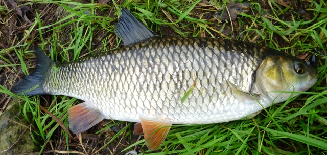 Diese Stelle befische ich sehr gern, weil es in diesem kleinem Fluss echt voll Spaß macht zu angeln. Der Fluss ist an dieser Stelle max. 1m tief. Meist gibt es hier eine sehr kurzweilige Angelei. Heute auch??? Dort angekommen musste ich erstmal feststellen, dass die Trübung des Wassers sehr mager ist. Fast glasklar präsentierte sich der kleine Wiesenfluss. Also erstmal unter die Kanalbrücke. Hier ist es sehr dunkel und man kann immer mit dem einen oder anderen Barsch rechnen. Los geht’s – kleinen Original im Barschdesign dran und ab dafür. Nach wenigen Minuten kam schon der Erste Barsch. Ein stattlicher Kollege von ca. 20cm. Für den Bach schon ganz ok. Direkt danach konnte ich noch 2 St. Erwischen und hatte noch 3 Fehlbisse. Geht doch! Dann kam noch ein kleiner Hecht ans Tageslicht. Am Ende des Tunnels schiebt sich dann eine Mauer noch ca. 15m in den Fluss. Sie dient als Stütze für die Brücke! Dort wo das Wasser bricht, hat man immer gute Chancen auf den König des Wiesenflusses – Der Döbel! Geliebt und gehasst – er ist sehr scheu und bei diesem klaren Wasser ist höchste Konzentration angesagt. Das Oberste Gebot lautet °“RUHE“! Bei genauer Beobachtung der Wasseroberfläche kann man meist schon die Ersten Anzeichen auf eine Döbel-Gruppe erkennen. Kleine Kringel an der Oberfläche, oder eine Welle die sich durch den Fluss bahnt – da stehen Döbel. Ich pirsche mich ganz ruhig an die Stelle – verharre dann bewegungslos und versuche mich nicht viel zu bewegen. Der Köder muss genau an die Stelle – da wo die Döbel vermutet werden. Los geht’s – The splendid Shot! Es muss ein perfekter Wurf sein – Köder fliegt – passt! Der kleine Original liegt auf der Wasseroberfläche – jetzt nichts machen! (Ganz wichtig!) Passiert nach 5-10 Sekunden nichts – Rute auf 9:37h und dann kommt die Topwater-Beetle-Dance Methode. Dabei versuche ich den Köder wie ein Käfer auf der Oberfläche tanzen zulassen. Gesagt – getan! Welle kommt vom Brückenpfeiler – Explosion an der Oberfläche – Rute geht in Lichtgeschwindigkeit auf die 12:23h Position – Hängt! Geile Kämpfer diese Döbel – weiter geht’s. Das Größte Problem ist immer nach einem Fang. Durch den Drill sind die anderen Schisser meist sofort weg. Jetzt kann man getrost ein paar Meter weiter gehen. 20m weiter – nächste Welle gesichtet – Splendid Shot – Original liegt verführerisch auf der Oberfläche. Let`s Dance – Dicke Bugwelle kommt vom Ufer – Attacke! Mist – Biss voll verkloppt! Nach 2 weiteren Fehlattacken scheint endlich wieder die Sonne – Haiflosse kommt frontal – WOSCH – Fisch hängt! Hammerdrill an feinem Gerät – 45cm Döbel Power – Geil! Und weiter – keine 10min. – KAWUSCH – Schöne Döbel-Mutti inhaliert sich mal wieder das Objekt der Begierde weg – Den Original! 41cm – macht das Laune. Danach wird der Fluss blitzartig schnell. Irgendwo ist eine Schleuse geöffnet. Ich gehe zurück in den Tunnel und dort wo ich die drei Barsche gefangen hatte, knallte es jetzt richtig. Jeder Wurf ein Biss. In sehr kurzer Zeit fange ich noch ca. 10 Barsche – in der schnellen Strömung echt ein Riesen Spaß.