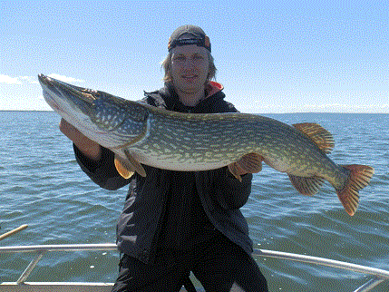 Seit vorgestern ist Carl Allen aus England hier. Ich habe ihm erklärt, dass es nicht nötig sei, nach NL für dicke Hechte zu fahren. Die Einladung von mir zum Angeln hier am Möhnesee hat er prompt angenommen und fährt nach 2 Tagen "Einweisung" über den Möhnesee. Neben viiiiel Sonne hat er prompt schon den Meterhecht gefangen und gestern eine dicke Oma beim Schleppen verloren. Heute hat er Geburtstag - mal sehen, was da kommt! :shock: :lol: