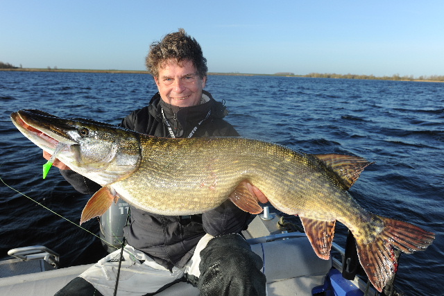 Jan konnte auf einer kürzlichen Guidingtour mit mir auch noch einen fetten Pike überlisten. Gewichtsmäßig war´s sein PB, aber er war 1 cm kürzer als sein längster Pike... 8-)