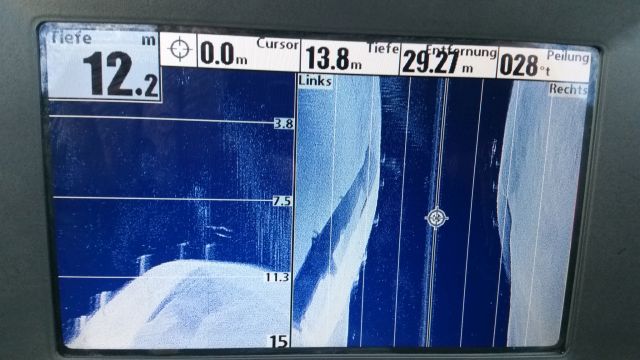 Im Internet gibt es viele Berichte über Echolot lesen. Hier alles aufzuführen ist zu Aufwendig. Aber auch mit einen einigermaßen vernünftigen Echolot (Sendeleistung), kann man was unter Wasser erkennen.