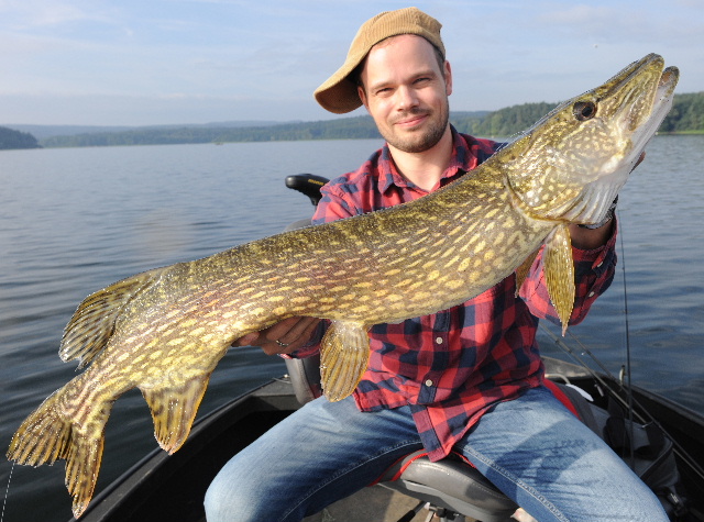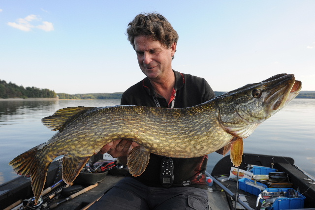 Gestern war ein regelrechtes "Hechtinferno" auf dem See, wie ich es selbst in dieser Meter-Dichte noch nicht erlebt habe. Eigentlich wollte ich gar nicht raus auf´s Wasser, sondern hatte viel zu tun. Lediglich, weil ich einen Kunden zum Tausch eines Bootes aufsuchen wollte, entdeckte ich eine große Dichte großer Fische. Klar, dass ich dann auch mal schnell den Köder ablasse. BUUMM - nach 1,5 Minuten hing ein Meterhecht an der Leine. Schnell hatten das andere Boote mitbekommen und bis zum Abend haben sich im "fängigen Bereich" ca. 10-12 Boote versammelt. Unterm STrich gab´s ca. 20 Meterfische bis 1,27 m, RIESENAALE (kein Scherz!) und auch einige, wenige Maränen. Das war absolut crazy. Meinen Hecht habe ich fotografiert und liefere ich nach. Was von den anderen Booten kommt, bleibt abzuwarten. Mitbekommen habe ich explizit folgende Größen: 1,27 m, 1,25 m, 1,18 m, 1,16 m, 1,14 m, 1,11 m, 1,10 m, 1,09 m, 1,08 m und viele "kleinere Meterfische". Wahnsinn, sag´ ich nur...