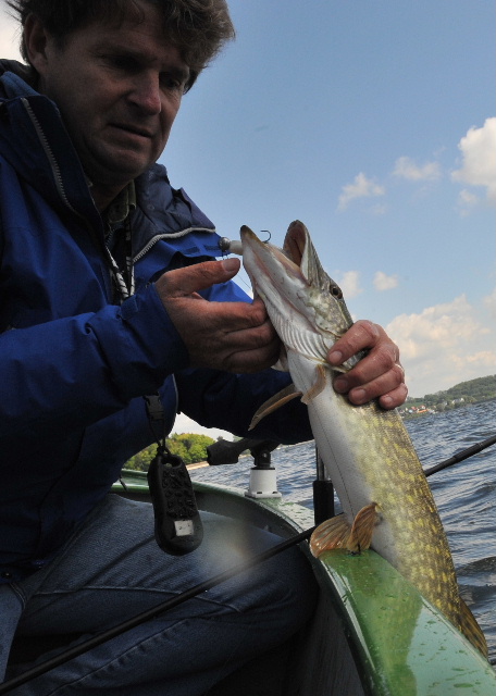 Meine Hoffnung lag auf Zalt-Wobblern, zumal mein Gast Dirk auch gleich nach 10 Minuten den ersten Hecht darauf fing. Bei mir blieb´s aber sehr lange ruhig - kein Biss, nichts...